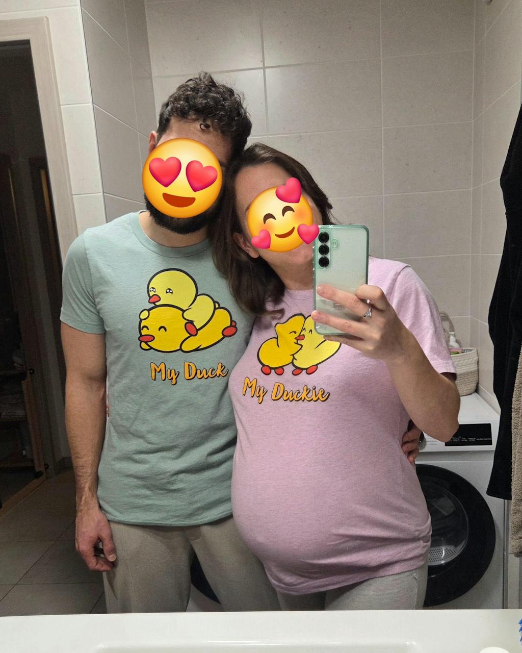 Un peu serrés donc prendre une taille au dessus si vous chercher un effet loose, nous avons pris du M (taille habituelle de monsieur et pour ma part je prends normalement du S mais je suis enceinte)